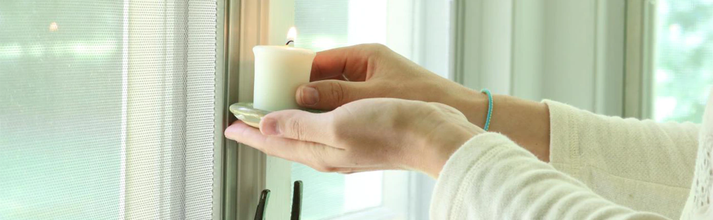 Еще вариант - использовать зажженную свечу. Рядом со сквозняком пламя будет дергаться, указывая на сквозняк.