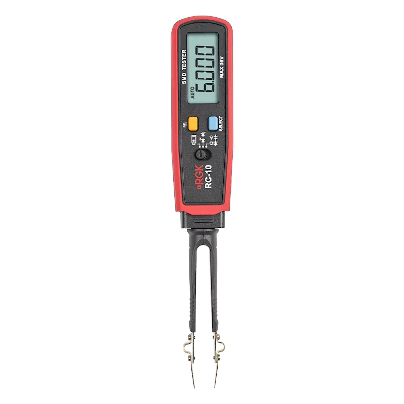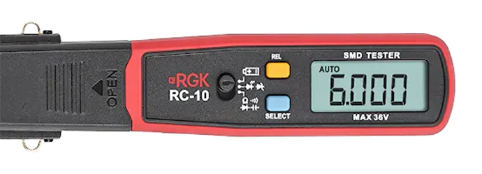 Измеритель smd-компонентов RGK RC-10 предназначен для измерения сопротивления и емкости электронных компонентов печатной платы, проверки целостности цепи, тестирования диодов, светодиодов, полупроводников и элементов питания с напряжением до 36 В. Широко используется при ремонте и диагностике электронных устройств. Прибор работает от двух батареей типа ААА 1,5 В.