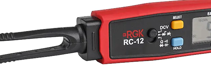 Индикатор низкого заряда батареи подсказывает, когда необходимо заменить элементы питания для поддержания прибора в рабочем состоянии. В целях экономии энергии прибор автоматически выключается через 10 минут бездействия. Измеритель RGK RC-12 поставляется вместе с комплектом тестовых проводов и элементами питания. Для безопасного и компактного хранения предусмотрен кожух пинцетного захвата, на котором прикреплены запасные наконечники. Благодаря прорезиненному покрытию на корпусе тестер не выскальзывает из рук.