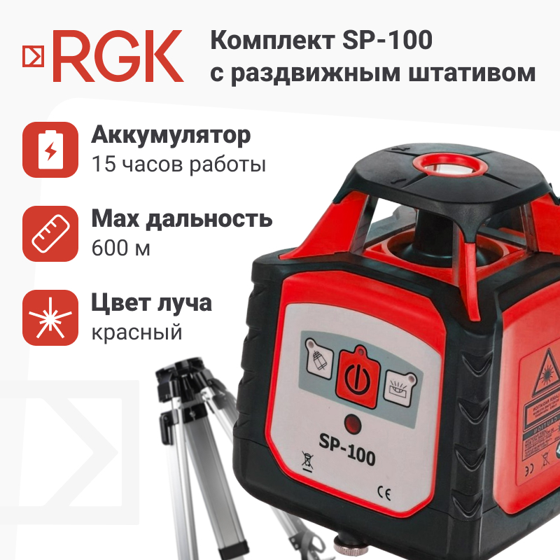 Особенности ротационного нивелира с раздвижным штативом RGK SP-100 COMBO:
